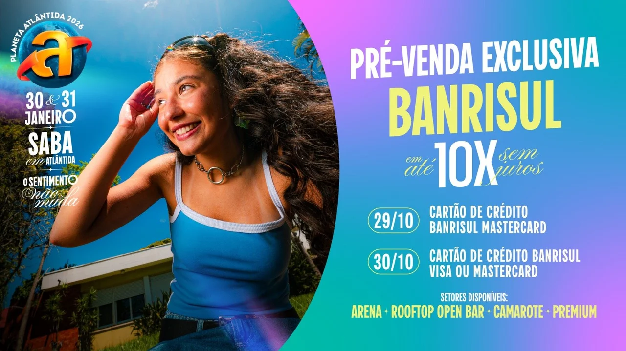 A pré-venda de ingressos para o Planeta Atlântida 2026 começa nesta quarta-feira (29), com exclusividade para clientes Banrisul.